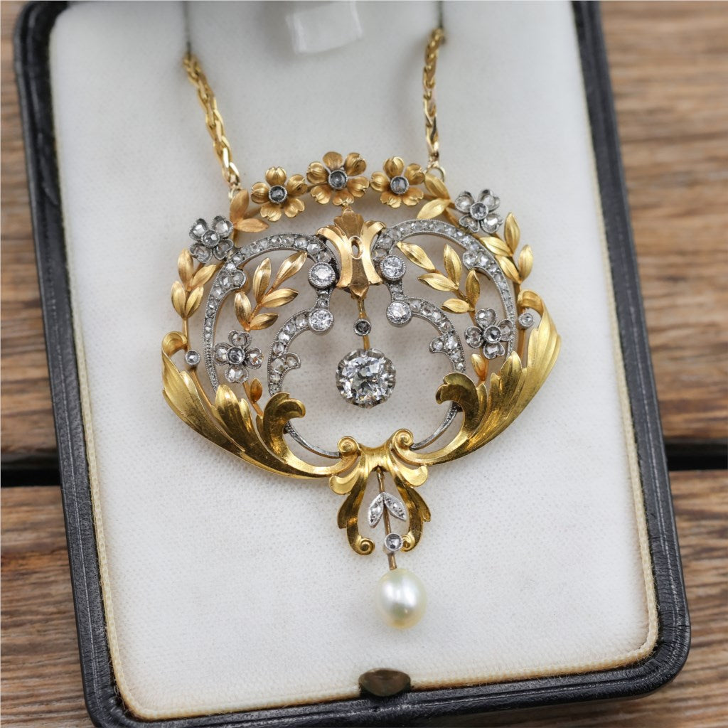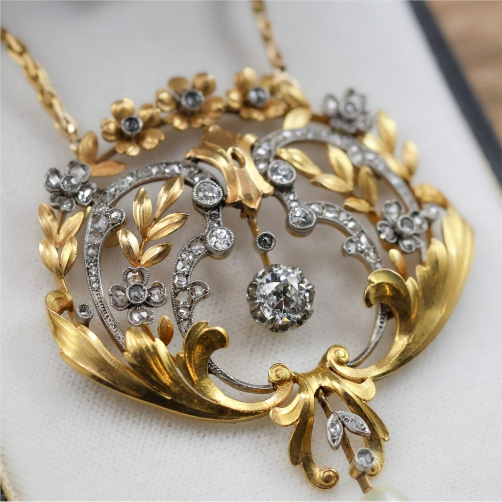 Edwardian Belle Epoch 18kt Yellow Gold and Platinum Diamond Filigree Necklace