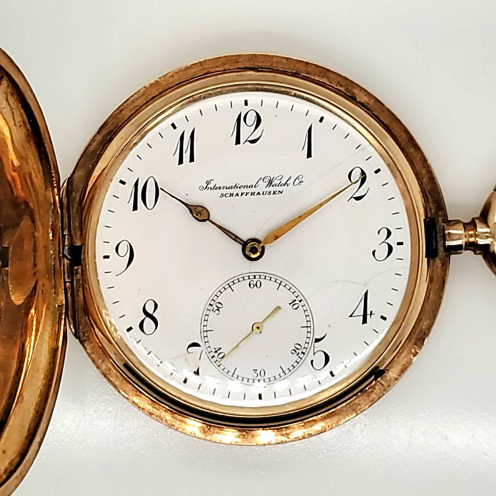 $7,750.00International Watch Company (IWC) 14ktyg hunter's case pocket watch machined case porcelain dial with hairline cracksQuick View {"id":7774324129857,"title":"IWC 14Kt Yellow Gold Hunters Case Pocket Watch","handle":"iwc-14kt-yellow-gold-hunters-case-pocket-watch","description":"International Watch Company (IWC) 14ktyg hunter's case pocket watch machined case porcelain dial with hairline cracks","published_at":"2026-01-17T04:47:53-06:00","created_at":"2026-01-17T04:47:52-06:00","vendor":"Street","type":"Pocket Watches","tags":["14 Karat","14k","14K Gold","14kt","antique","estate","gold","hunter's case","international watch company","IWC","JewelCloud","None","pocket","pocket watch","Pocket Watches","Street","Unisex","vintage","Watches","Yellow"],"price":575000,"price_min":575000,"price_max":575000,"available":true,"price_varies":false,"compare_at_price":775000,"compare_at_price_min":775000,"compare_at_price_max":775000,"compare_at_price_varies":false,"variants":[{"id":43270258229313,"title":"Default Title","option1":"Default Title","option2":null,"option3":null,"sku":"001-506-00629","requires_shipping":true,"taxable":true,"featured_image":null,"available":true,"name":"IWC 14Kt Yellow Gold Hunters Case Pocket Watch","public_title":null,"options":["Default Title"],"price":575000,"weight":0,"compare_at_price":775000,"inventory_management":"shopify","barcode":null,"requires_selling_plan":false,"selling_plan_allocations":[]}],"images":["\/\/levysfinejewelry.com\/cdn\/shop\/files\/506-00629.jpg?v=1768646874","\/\/levysfinejewelry.com\/cdn\/shop\/files\/506-00629-02.jpg?v=1768646874","\/\/levysfinejewelry.com\/cdn\/shop\/files\/506-00629-03.jpg?v=1768646874"],"featured_image":"\/\/levysfinejewelry.com\/cdn\/shop\/files\/506-00629.jpg?v=1768646874","options":["Title"],"media":[{"alt":"IWC 14Kt Yellow Gold Hunters Case Pocket Watch","id":28621037338689,"position":1,"preview_image":{"aspect_ratio":1.0,"height":1080,"width":1080,"src":"\/\/levysfinejewelry.com\/cdn\/shop\/files\/506-00629.jpg?v=1768646874"},"aspect_ratio":1.0,"height":1080,"media_type":"image","src":"\/\/levysfinejewelry.com\/cdn\/shop\/files\/506-00629.jpg?v=1768646874","width":1080},{"alt":"IWC 14Kt Yellow Gold Hunters Case Pocket Watch","id":28621037371457,"position":2,"preview_image":{"aspect_ratio":1.0,"height":1080,"width":1080,"src":"\/\/levysfinejewelry.com\/cdn\/shop\/files\/506-00629-02.jpg?v=1768646874"},"aspect_ratio":1.0,"height":1080,"media_type":"image","src":"\/\/levysfinejewelry.com\/cdn\/shop\/files\/506-00629-02.jpg?v=1768646874","width":1080},{"alt":"IWC 14Kt Yellow Gold Hunters Case Pocket Watch","id":28621037404225,"position":3,"preview_image":{"aspect_ratio":1.0,"height":1080,"width":1080,"src":"\/\/levysfinejewelry.com\/cdn\/shop\/files\/506-00629-03.jpg?v=1768646874"},"aspect_ratio":1.0,"height":1080,"media_type":"image","src":"\/\/levysfinejewelry.com\/cdn\/shop\/files\/506-00629-03.jpg?v=1768646874","width":1080}],"requires_selling_plan":false,"selling_plan_groups":[],"content":"International Watch Company (IWC) 14ktyg hunter's case pocket watch machined case porcelain dial with hairline cracks"}