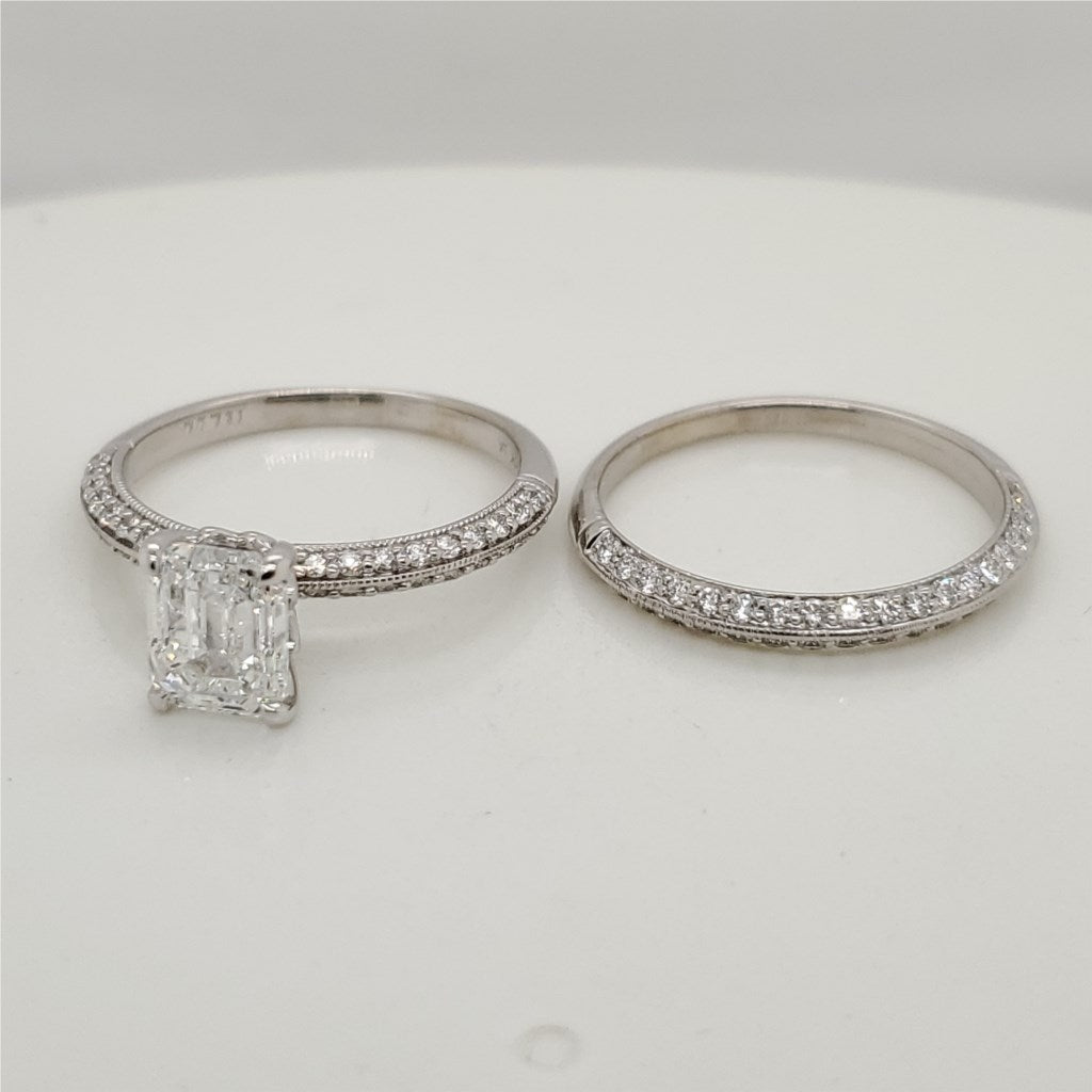 14kt White Gold 1.63 Carat Emerald Cut Diamond Wedding Set