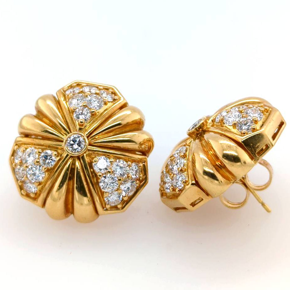 - Hammerman Brothers 18Kt Yellow Gold Fluted Design Earrings Each With 19 Round Brilliant Cut Diamonds With An Estimated Total Weight Of Three Carats Grading As D-E In Color And Vs-1 In Clarity