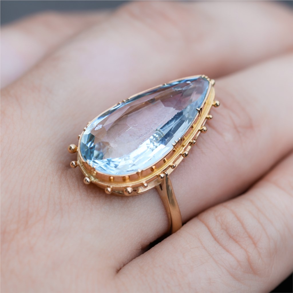 $2,795.00Vintage 14kt yellow gold ring featuring one estimated 6.60 carat pear shaped aquamarineQuick View {"id":7745248231489,"title":"Vintage 14kt Yellow Gold Pear Shaped Aquamarine Ring","handle":"vintage-14kt-yellow-gold-pear-shaped-aquamarine-ring","description":"Vintage 14kt yellow gold ring featuring one estimated 6.60 carat pear shaped aquamarine","published_at":"2025-12-14T05:33:28-06:00","created_at":"2025-12-14T05:33:27-06:00","vendor":"Street","type":"Colored Stone Rings - Women's","tags":["14 Karat","14k","14K Gold","14kt","aqua","aqua ring","aquamarine","Colored Stone Rings","Colored Stone Rings - Women's","estate","facebook","gold","JewelCloud","Jewelry","pear shaped aqua","Rings","Street","unique engagement ring","vintage","Womens","Yellow"],"price":199500,"price_min":199500,"price_max":199500,"available":true,"price_varies":false,"compare_at_price":279500,"compare_at_price_min":279500,"compare_at_price_max":279500,"compare_at_price_varies":false,"variants":[{"id":43175111786561,"title":"Default Title","option1":"Default Title","option2":null,"option3":null,"sku":"001-200-12346","requires_shipping":true,"taxable":true,"featured_image":null,"available":true,"name":"Vintage 14kt Yellow Gold Pear Shaped Aquamarine Ring","public_title":null,"options":["Default Title"],"price":199500,"weight":0,"compare_at_price":279500,"inventory_management":"shopify","barcode":null,"requires_selling_plan":false,"selling_plan_allocations":[]}],"images":["\/\/levysfinejewelry.com\/cdn\/shop\/files\/200-12346.jpg?v=1765797973","\/\/levysfinejewelry.com\/cdn\/shop\/files\/200-12346-02.jpg?v=1765797973","\/\/levysfinejewelry.com\/cdn\/shop\/files\/200-12346-03.jpg?v=1765797973","\/\/levysfinejewelry.com\/cdn\/shop\/files\/200-12346-04.jpg?v=1765797973","\/\/levysfinejewelry.com\/cdn\/shop\/files\/200-12346-05.jpg?v=1765797973"],"featured_image":"\/\/levysfinejewelry.com\/cdn\/shop\/files\/200-12346.jpg?v=1765797973","options":["Title"],"media":[{"alt":"Vintage 14kt Yellow Gold Pear Shaped Aquamarine Ring","id":28293577015361,"position":1,"preview_image":{"aspect_ratio":1.0,"height":1024,"width":1024,"src":"\/\/levysfinejewelry.com\/cdn\/shop\/files\/200-12346.jpg?v=1765797973"},"aspect_ratio":1.0,"height":1024,"media_type":"image","src":"\/\/levysfinejewelry.com\/cdn\/shop\/files\/200-12346.jpg?v=1765797973","width":1024},{"alt":"Vintage 14kt Yellow Gold Pear Shaped Aquamarine Ring","id":28293577048129,"position":2,"preview_image":{"aspect_ratio":0.999,"height":1024,"width":1023,"src":"\/\/levysfinejewelry.com\/cdn\/shop\/files\/200-12346-02.jpg?v=1765797973"},"aspect_ratio":0.999,"height":1024,"media_type":"image","src":"\/\/levysfinejewelry.com\/cdn\/shop\/files\/200-12346-02.jpg?v=1765797973","width":1023},{"alt":"Vintage 14kt Yellow Gold Pear Shaped Aquamarine Ring","id":28293577080897,"position":3,"preview_image":{"aspect_ratio":1.0,"height":1024,"width":1024,"src":"\/\/levysfinejewelry.com\/cdn\/shop\/files\/200-12346-03.jpg?v=1765797973"},"aspect_ratio":1.0,"height":1024,"media_type":"image","src":"\/\/levysfinejewelry.com\/cdn\/shop\/files\/200-12346-03.jpg?v=1765797973","width":1024},{"alt":"Vintage 14kt Yellow Gold Pear Shaped Aquamarine Ring","id":28293577113665,"position":4,"preview_image":{"aspect_ratio":1.0,"height":1024,"width":1024,"src":"\/\/levysfinejewelry.com\/cdn\/shop\/files\/200-12346-04.jpg?v=1765797973"},"aspect_ratio":1.0,"height":1024,"media_type":"image","src":"\/\/levysfinejewelry.com\/cdn\/shop\/files\/200-12346-04.jpg?v=1765797973","width":1024},{"alt":"Vintage 14kt Yellow Gold Pear Shaped Aquamarine Ring","id":28293577146433,"position":5,"preview_image":{"aspect_ratio":1.0,"height":1024,"width":1024,"src":"\/\/levysfinejewelry.com\/cdn\/shop\/files\/200-12346-05.jpg?v=1765797973"},"aspect_ratio":1.0,"height":1024,"media_type":"image","src":"\/\/levysfinejewelry.com\/cdn\/shop\/files\/200-12346-05.jpg?v=1765797973","width":1024}],"requires_selling_plan":false,"selling_plan_groups":[],"content":"Vintage 14kt yellow gold ring featuring one estimated 6.60 carat pear shaped aquamarine"}