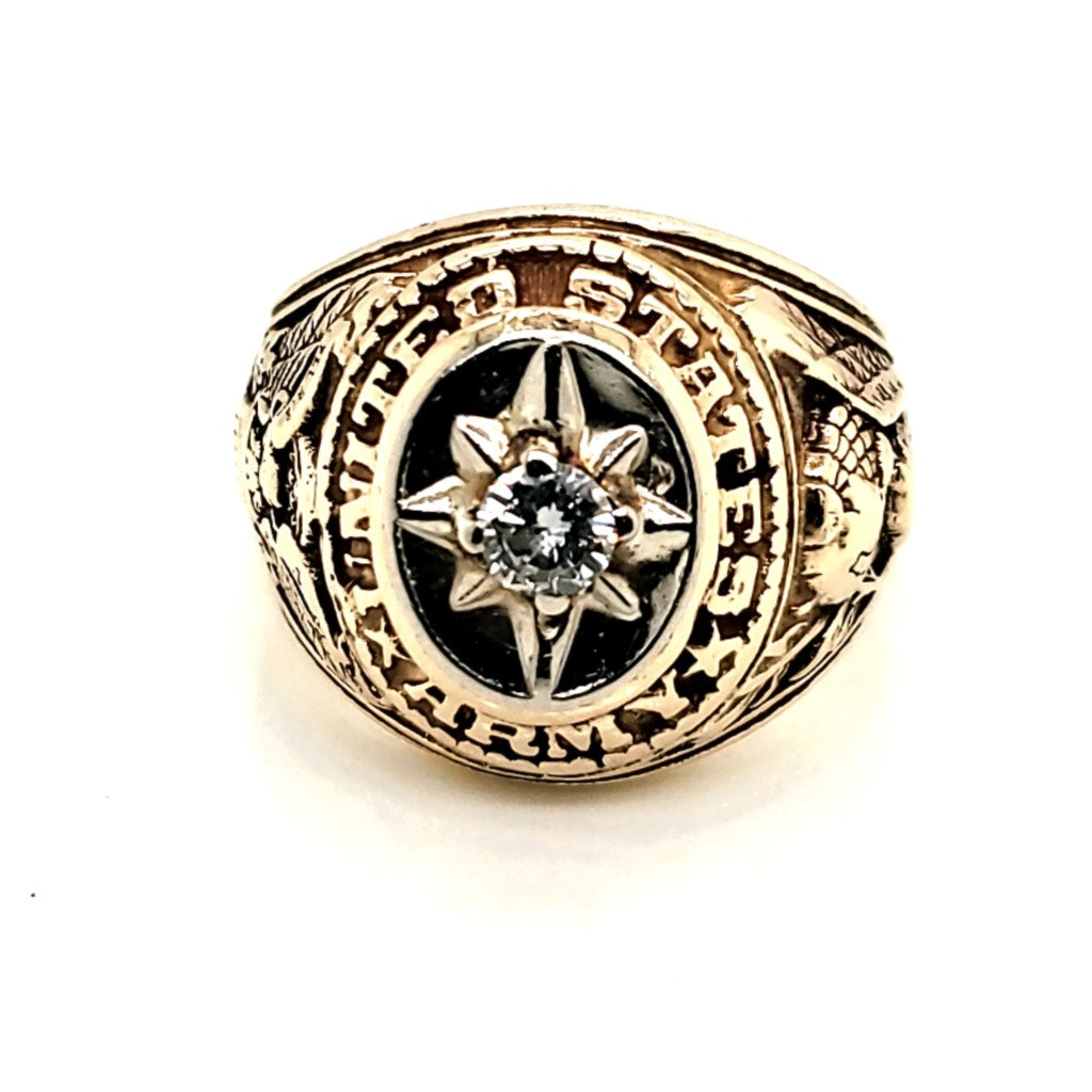 10kt Yellow Gold US Army Ring with Diamond