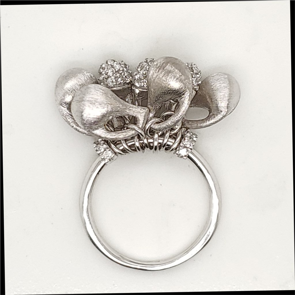 - 18kt white gold designer dangle top ring with pave set diamonds