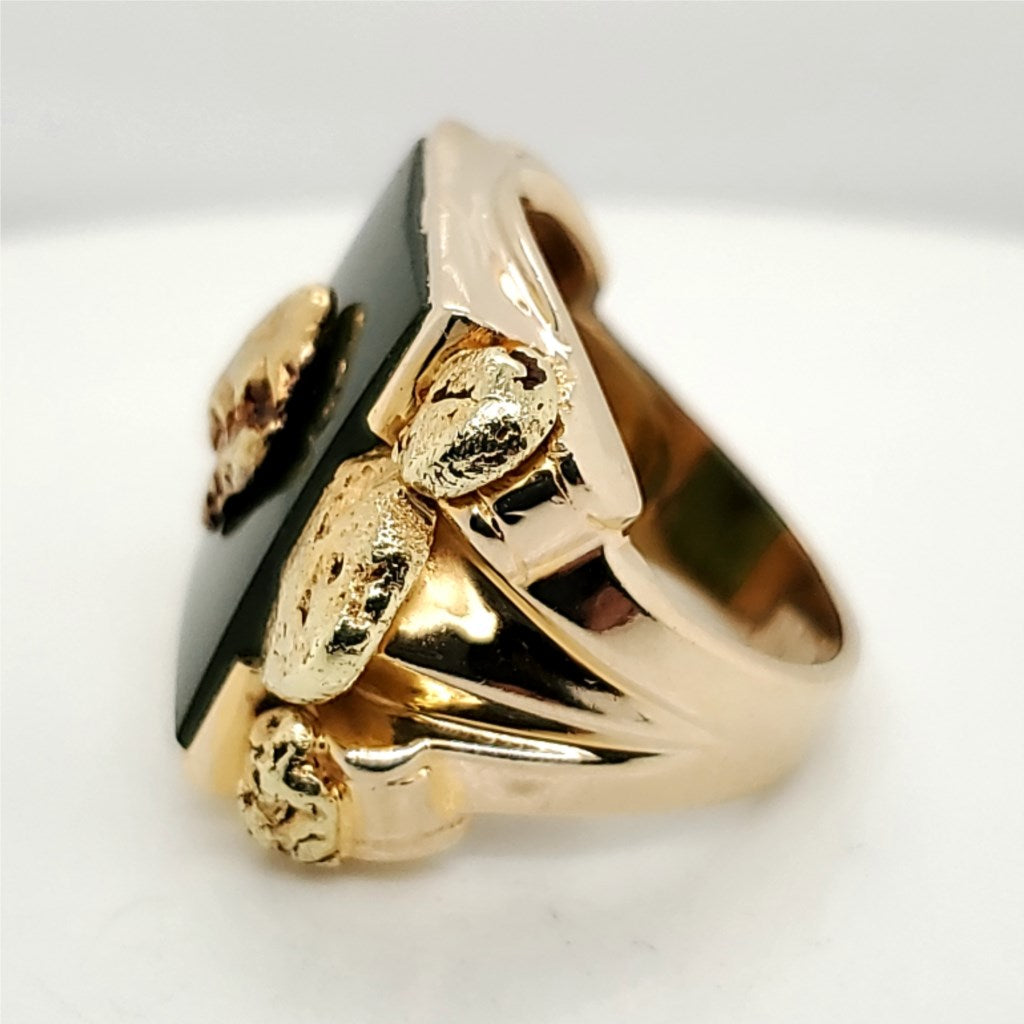 - Vintage mid-century men's 10kt yellow gold ring with one 20x14 rectangular Alaskan nephrite jade with natural Alaskan gold nuggets