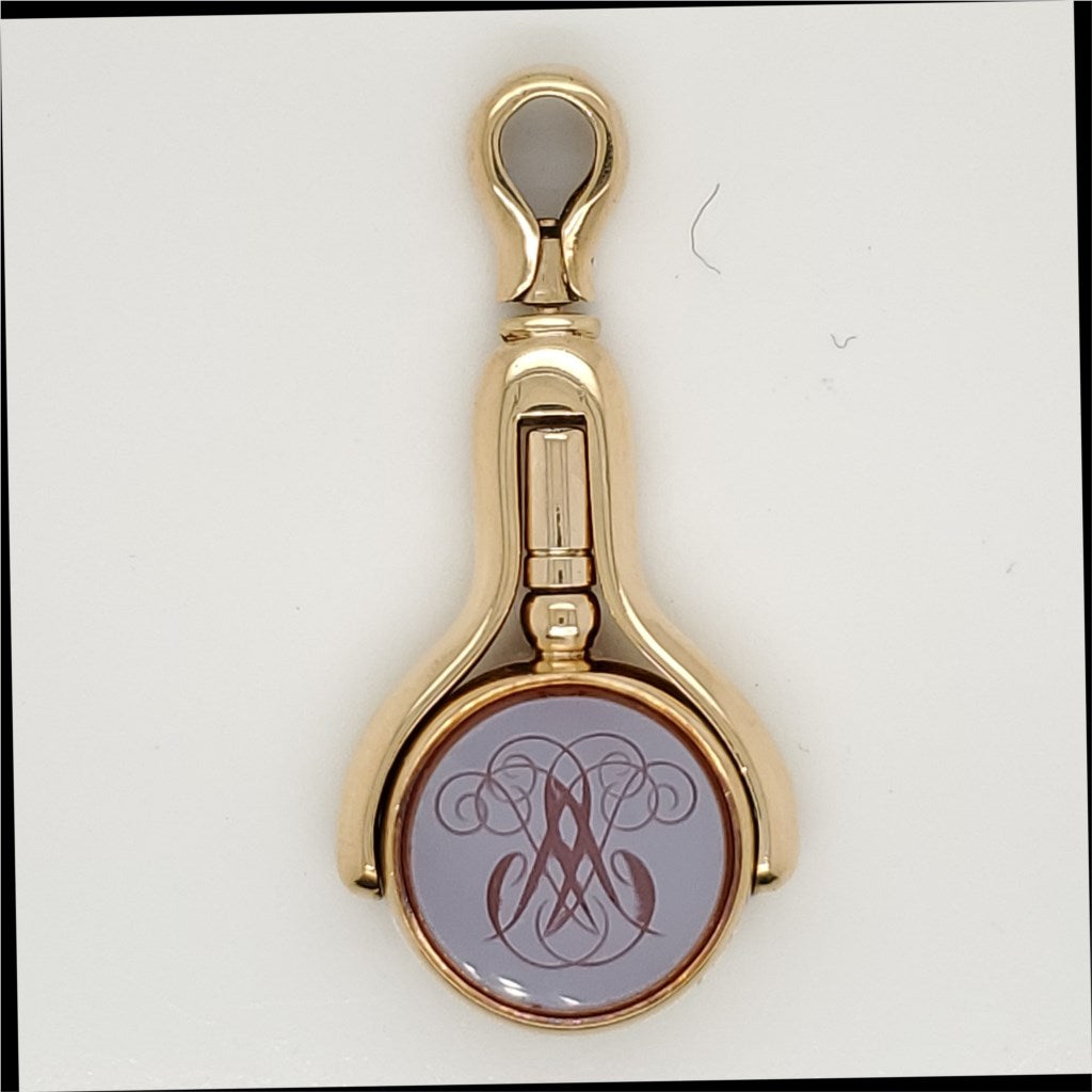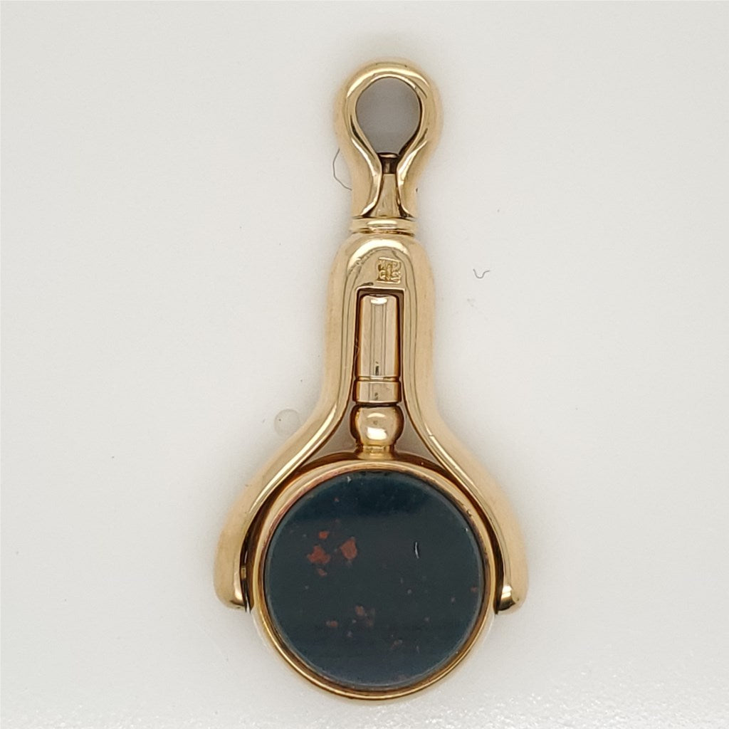 - Antique Victorian 14kyg watch key fob with engraved carved agate on one side and bloodstone on the opposite