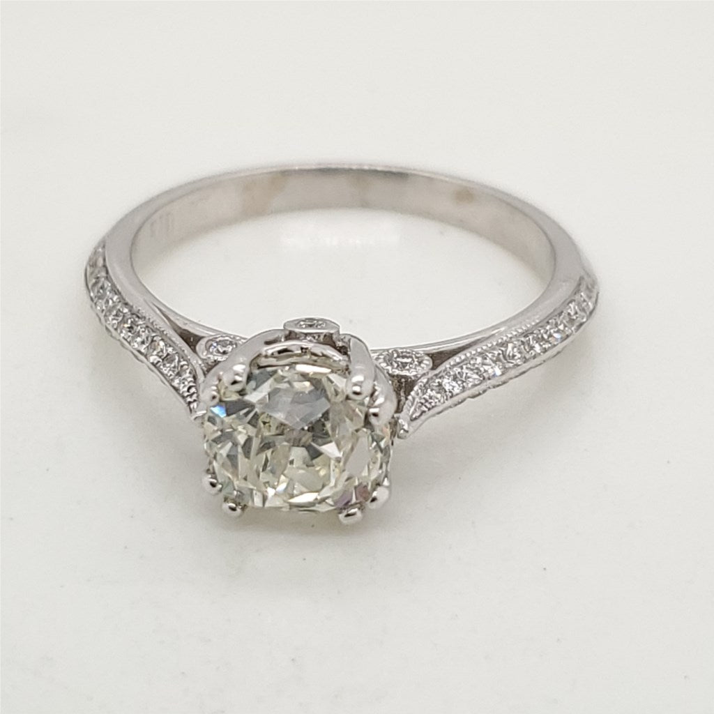 18kt White Gold 1.32 Mine Cut Diamond in a Modern Mounting