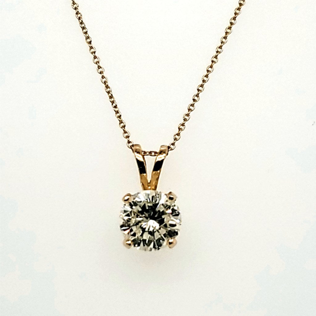 1.26 Carat Round Brilliant Cut Diamond Solitaire Pendant in 14Kt Yello