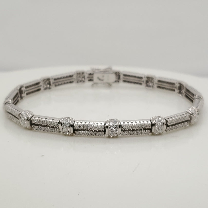 - 14kt white gold link bracelet set with 312 round brilliant cut diamonds with an estimated total weight of 3.00 carats