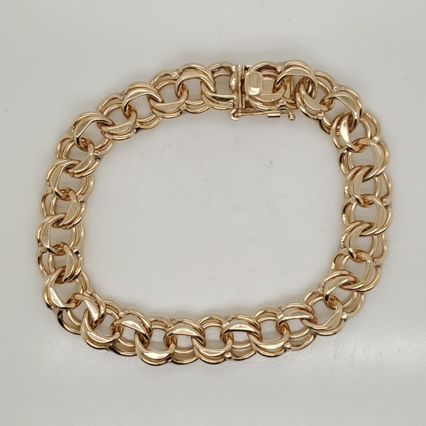 $1,175.0014kt yellow gold double link charm bracelet measuring 8mm wideQuick View {"id":7749565612097,"title":"14kt Yellow Gold Charm Bracelet","handle":"14kt-yellow-gold-charm-bracelet-3","description":"14kt yellow gold double link charm bracelet measuring 8mm wide","published_at":"2025-12-17T05:43:10-06:00","created_at":"2025-12-17T05:43:09-06:00","vendor":"Street","type":"Gold Bracelets","tags":["14 Karat","14k","14K Gold","14kt","8mm","Bracelets","charm bracelet","double link","gold bracelet","Gold Bracelets","JewelCloud","Jewelry","None","Street","Unisex","Yellow","yellow gold"],"price":79500,"price_min":79500,"price_max":79500,"available":true,"price_varies":false,"compare_at_price":117500,"compare_at_price_min":117500,"compare_at_price_max":117500,"compare_at_price_varies":false,"variants":[{"id":43187032457281,"title":"Default Title","option1":"Default Title","option2":null,"option3":null,"sku":"001-440-06236","requires_shipping":true,"taxable":true,"featured_image":null,"available":true,"name":"14kt Yellow Gold Charm Bracelet","public_title":null,"options":["Default Title"],"price":79500,"weight":0,"compare_at_price":117500,"inventory_management":"shopify","barcode":null,"requires_selling_plan":false,"selling_plan_allocations":[]}],"images":["\/\/levysfinejewelry.com\/cdn\/shop\/files\/440-06236.jpg?v=1765971791"],"featured_image":"\/\/levysfinejewelry.com\/cdn\/shop\/files\/440-06236.jpg?v=1765971791","options":["Title"],"media":[{"alt":"14kt Yellow Gold Charm Bracelet","id":28322746794049,"position":1,"preview_image":{"aspect_ratio":1.0,"height":1024,"width":1024,"src":"\/\/levysfinejewelry.com\/cdn\/shop\/files\/440-06236.jpg?v=1765971791"},"aspect_ratio":1.0,"height":1024,"media_type":"image","src":"\/\/levysfinejewelry.com\/cdn\/shop\/files\/440-06236.jpg?v=1765971791","width":1024}],"requires_selling_plan":false,"selling_plan_groups":[],"content":"14kt yellow gold double link charm bracelet measuring 8mm wide"}